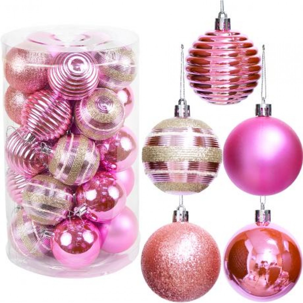 Набір новорічних куль 25шт D6см Рожевий (5 дизайнів по 5шт) YH-9287 тубус