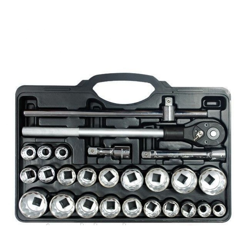 Набор инструментов ET-6026 TM INTERTOOL из 26 единиц с квадратом 3/4" изготовлен из хромованадиевой стали.