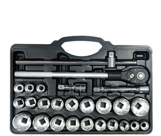 Набор инструментов ET-6026 TM INTERTOOL из 26 единиц с квадратом 3/4" изготовлен из хромованадиевой стали.
