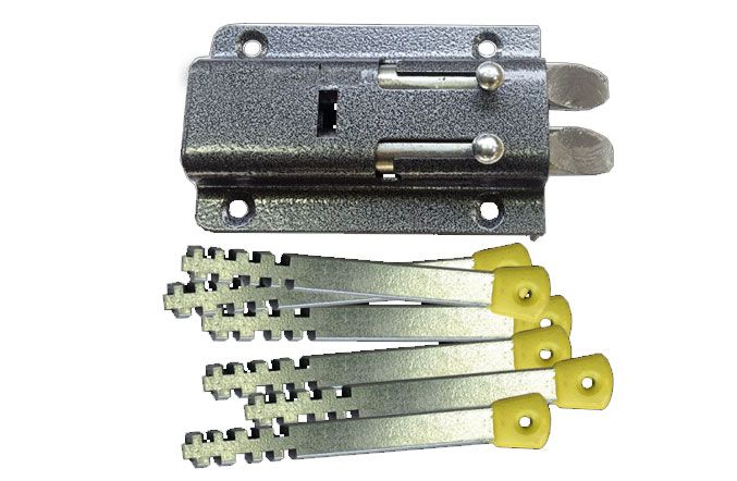 Подьездный замок Реечного типа .С большим колличеством ключей.Замок самозахлопывающийся.Кол - во ключей: 30 шт.Реечный замок – это накладной механический замок, который имеет один либо два ригеля для запирания. В принципе, схема работы замка довольно проста. На основном ригеле фрезой нарезаны косые пазы под определенным углом, которые совпадают по расположению с зубцами на ключе. Когда ключ вставляем в замочную скважину, то он зацепляется зубцами за пазы рейки и под нажатием рейка отодвигается и дверь открывается