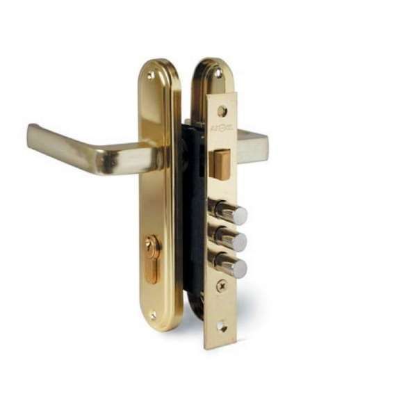 Это отличный замок для деревянных дверей. Он закрывается ключом. Имеет ручки и защелку. Вы сможете заказать и купить замок у нас в Днепропетровске. Асортимент цветов: бронза, золото,хром.Основные характеристики замка Kedr 1026 (АВ):Тип ригелей ЦилиндрическиеКоличество ригелей 3