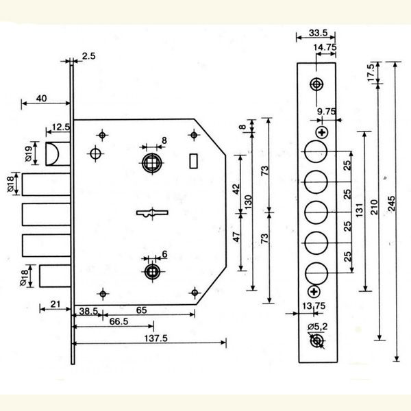 Расстояние в замке Апекс Т-21 между отверстиями крепежа 210 мм