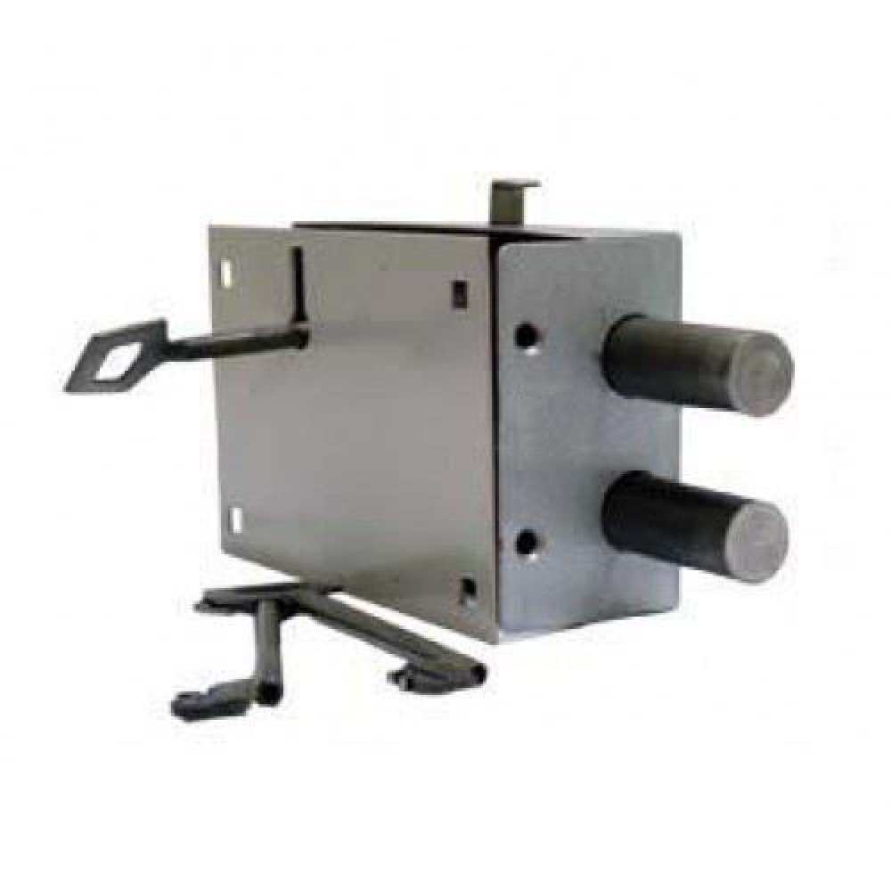Гаражный замок с массивными ригелями для запирания складов, магазинов, гаражей производственных помещений. Корпус стальной, комплектуется запорной коробкой