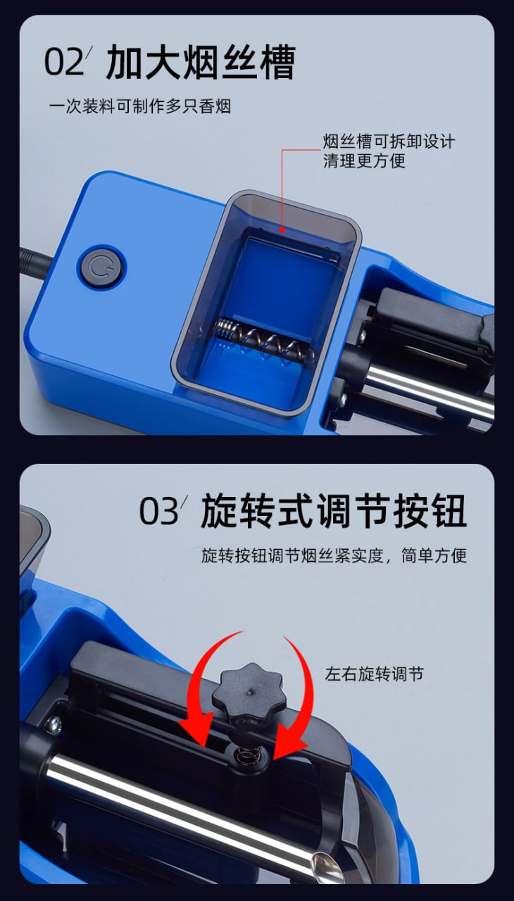Электрическая машинка для набивки сигарет 2 в 1 (6,5 и 8 мм) HAPPY JT-055-2 Blue