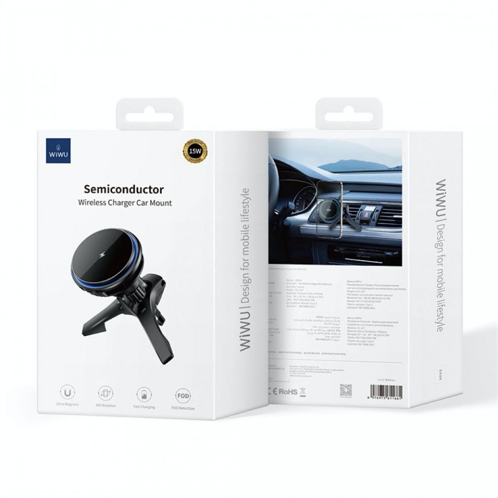 Автотримач магнітний на повітропровід з бездротовою зарядкою 15W WiWU CH317