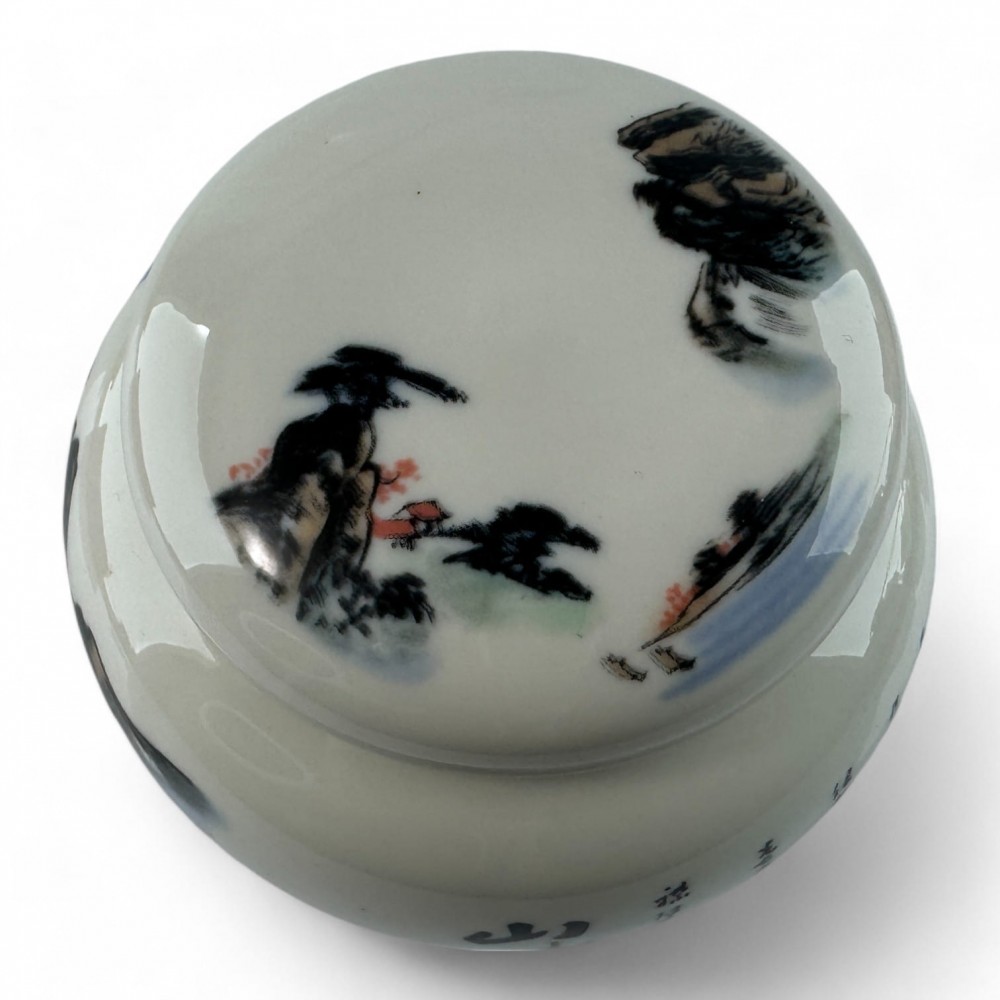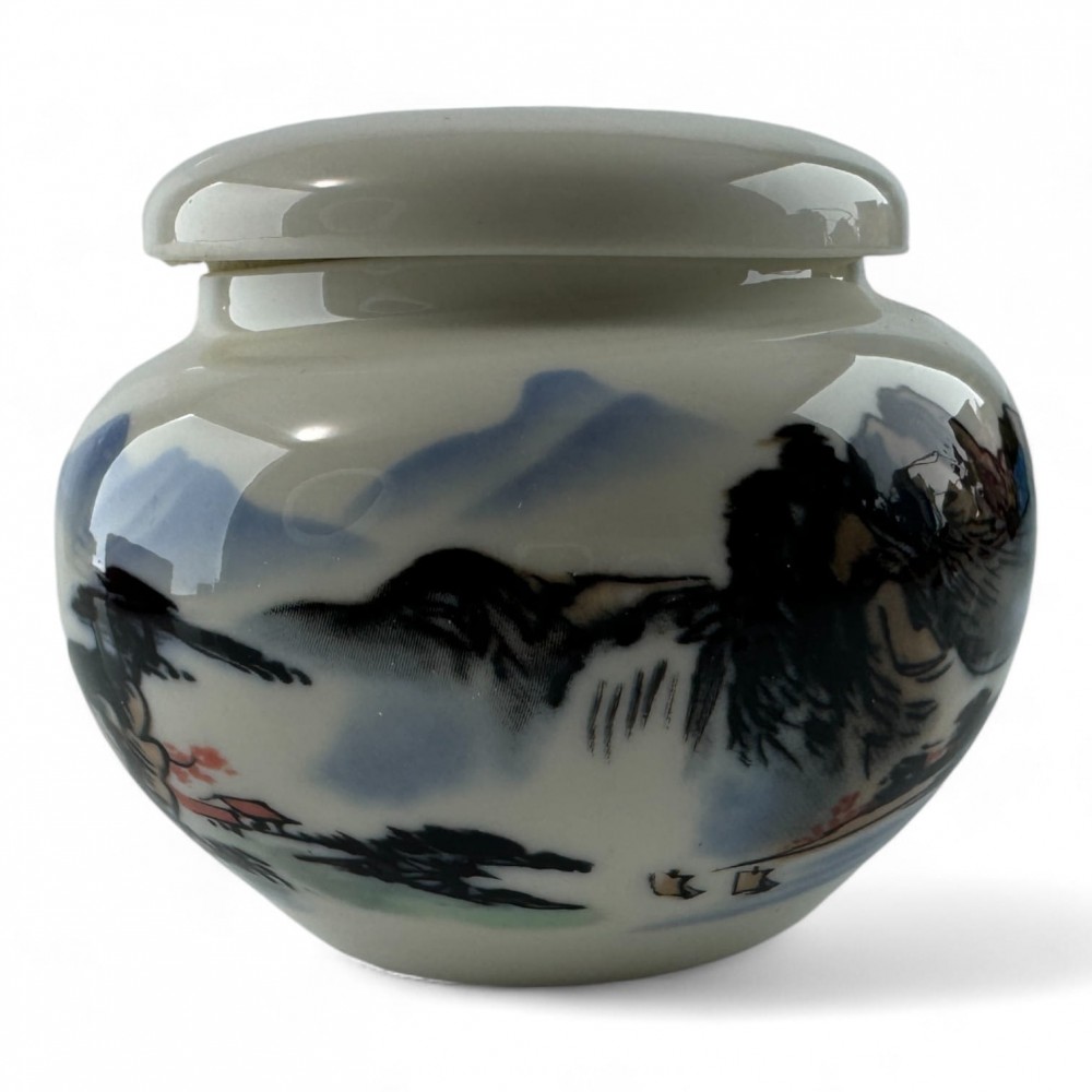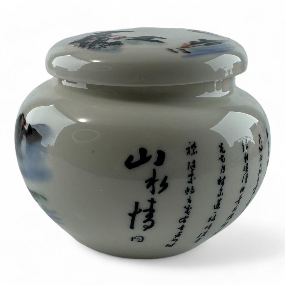 Эта изящная керамическая баночка идеально подходит для хранения чая. Ее округлая форма и плотно прилегающая крышка сохранят свежесть вашего любимого напитка. Оригинальная роспись с пейзажными мотивами в стиле восточной живописи добавляет эстетичности, делая эту баночку не только функциональным, но и декоративным элементом вашей кухни.