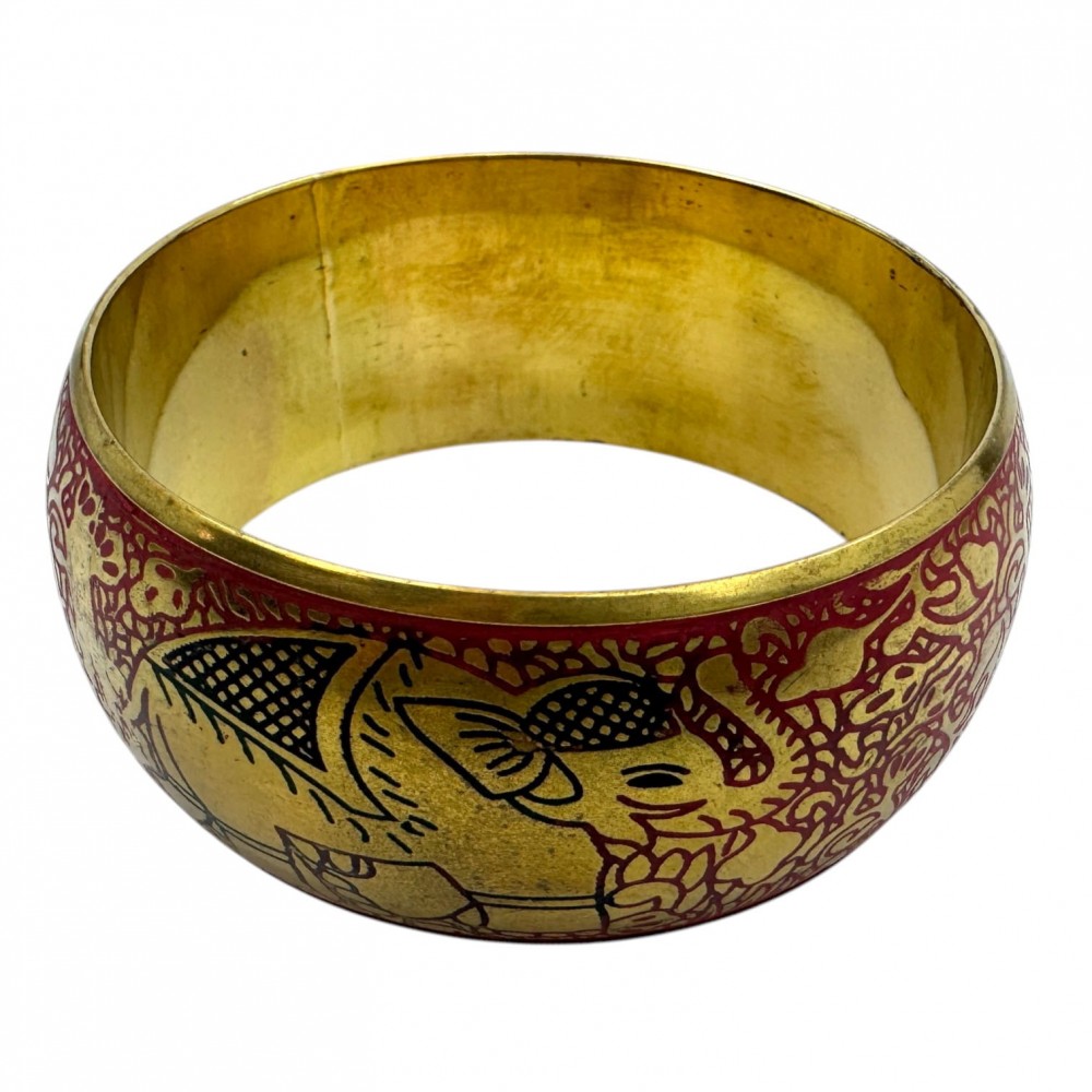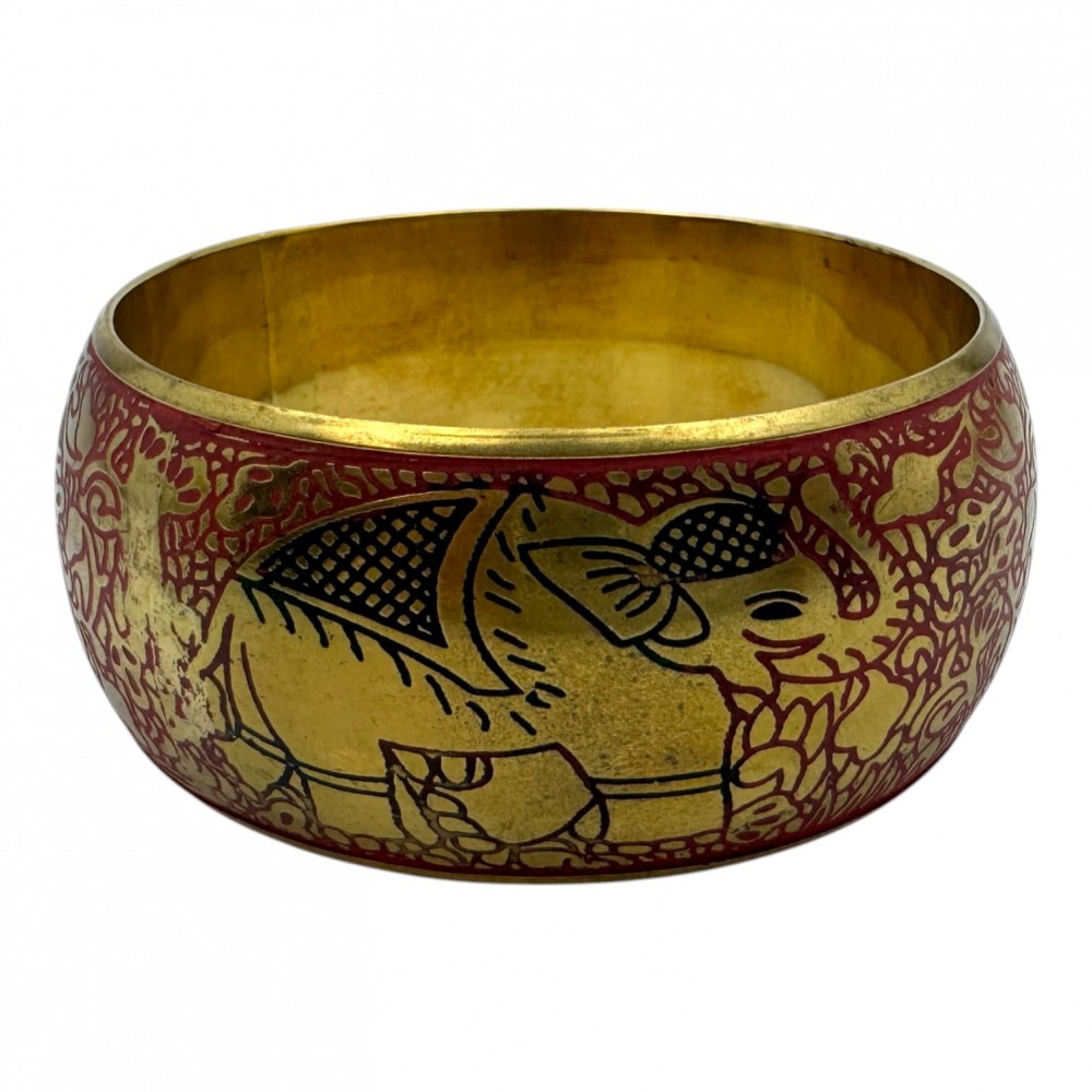 Браслет бронзовый с эмалью и гравировкой "Слоны" красный (d-7,8 ; 6,5. h-3 см)