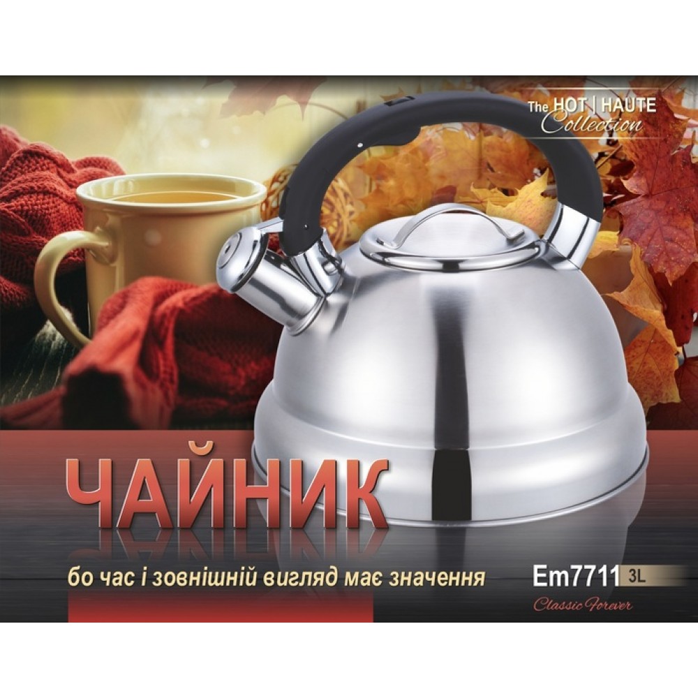 Для безпечного та зручного використання чайник отримав термостійкі бакелітові ручки з SOFT-Touch покриттям і кнопкою відкриття носика. Корпус свистка також виконано з бакеліту, який захистить від випадкових опіків під час використання.Корпус чайника виготовлено з міцної високоякісної неіржавкої сталі, потовщене дно забезпечує максимальну теплопровідність, що дає рівномірний нагрів і підвищення ефективності кип’ятіння. Стійкий до іржі та корозії, тому прослужить вам довгі роки.