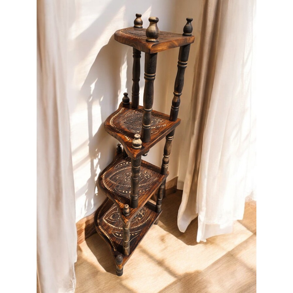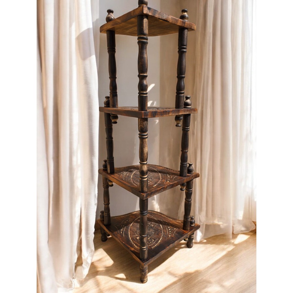 Этажерка из мангового дерева на 4 полки — стильный и функциональный элемент для вашего интерьера. Эта мебель выполнена из прочного и экологичного мангового дерева, что придает ей уникальный вид и долговечность. Естественная текстура древесины добавляет тепла и уюта в любое пространство.