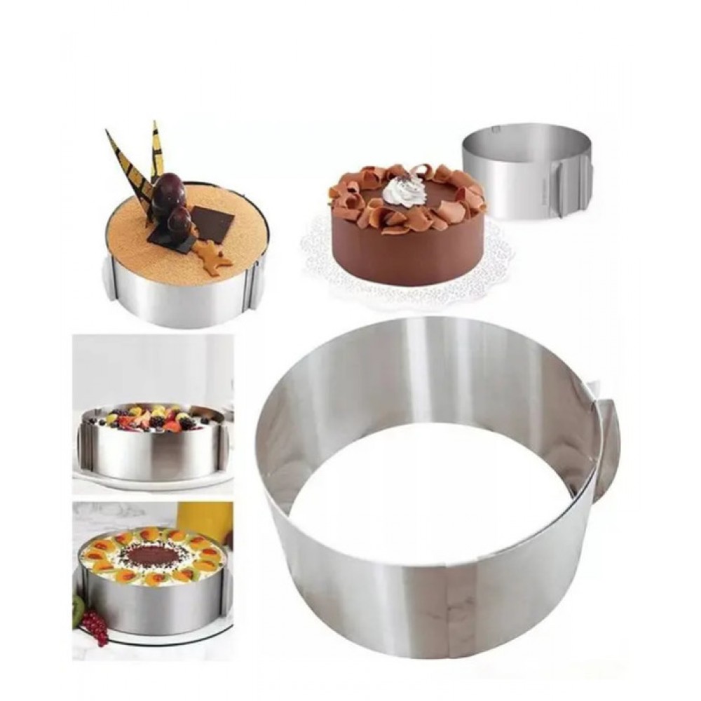Діаметр форми легко налаштовується, дозволяючи створювати коржі різного розміру, що ідеально підходить для листкових тортів та кексів. Виготовлена з нержавіючої сталі, форма забезпечує довговічність та стійкість до корозії, що робить її безпечною та зручною для використання в харчових цілях.