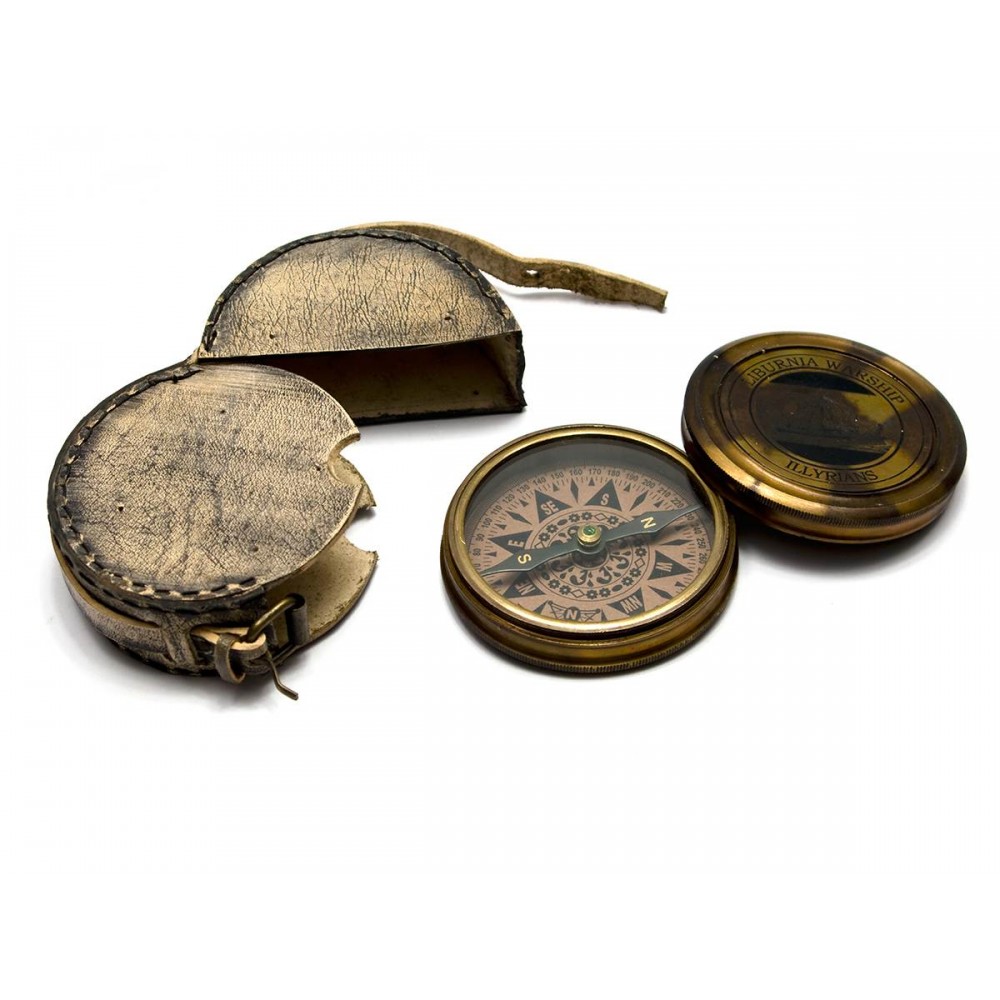 Компас станет отличным подарком для морского волка и стильным предметом интерьера, при том он абсолютно функционален. Обратите внимание: компас сделан в стиле ретро; изделия изначально выглядят состаренными, футляры и поверхность компасов — потертыми.