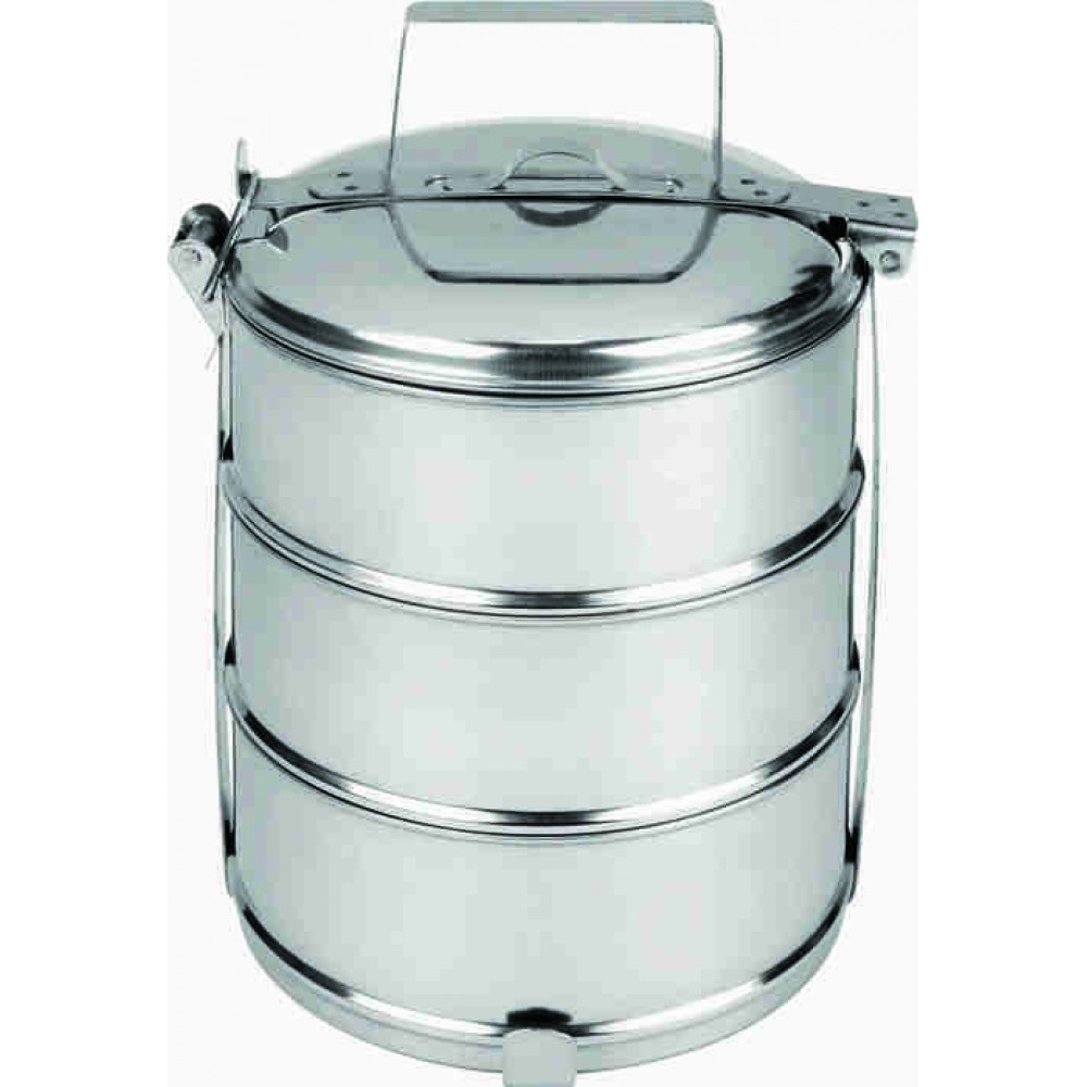 Особливість цих судочків полягає в тому, що вони поєднуються між собою в одне ціле, за рахунок цього не займають багато місця і легко транспортуються. У наборі 3 судочки, кожен об’ємом 1 л. Виготовлений із нержавіючої сталі. Матеріал міцний, не вбирає запахи та смаки продуктів. Переносяться судочки за допомогою спеціальної ручки.