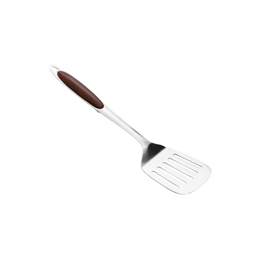 Лопатка з прорізами ідеально підходить для швидкого і безпечного, акуратного перевертання їжі, що прожарюється. Має традиційну, максимально ергономічну форму, і створений з довговічного, зносостійкого матеріалу без стороннього запаху.