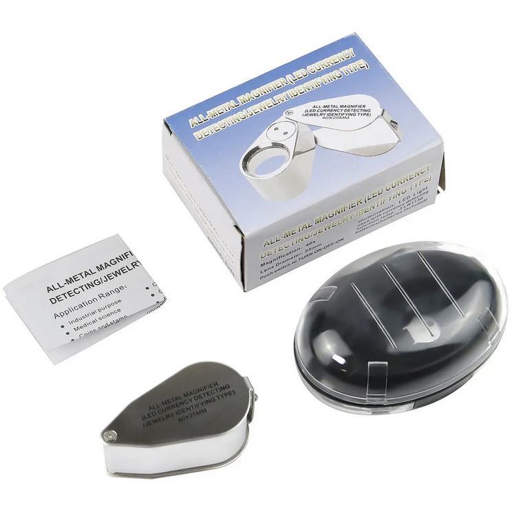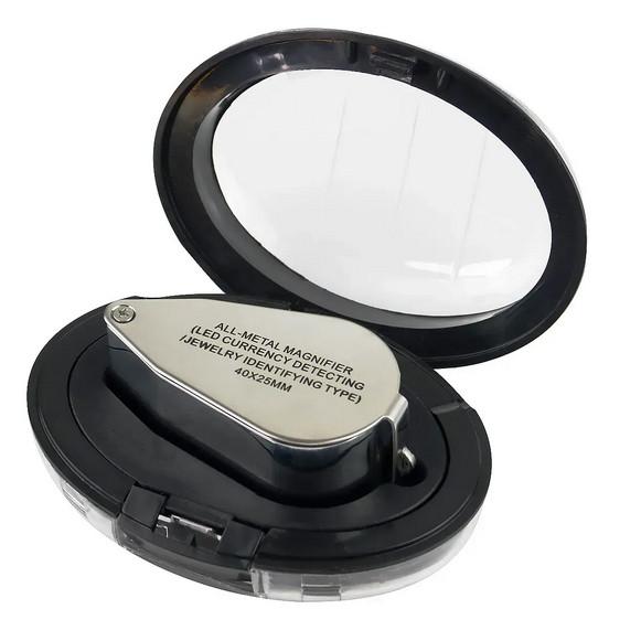Лупа складная 40x с LED и UV-подсветкой, металлическая MG9890