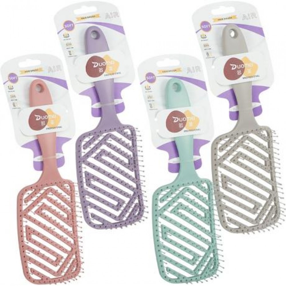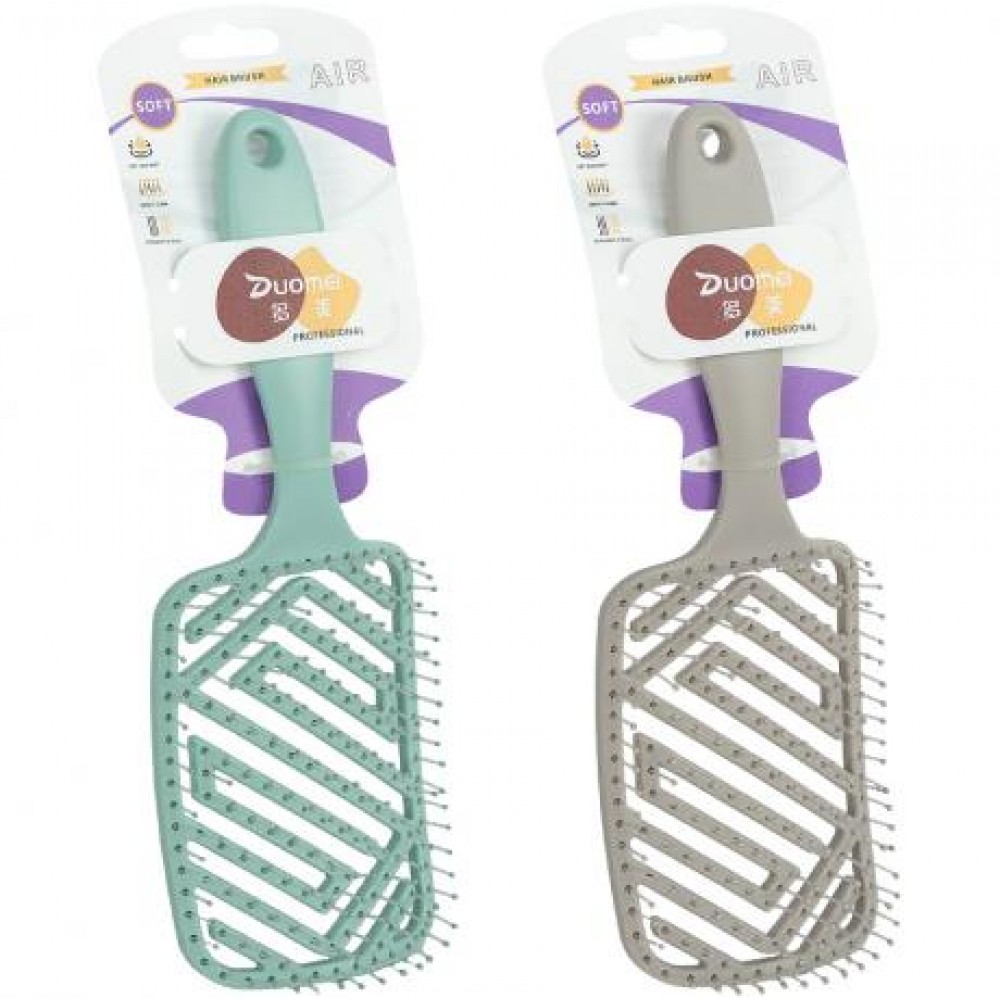 Масажна щітка для волосся з вентиляційною робочою поверхнею — зручний інструмент для щоденного догляду. Гнучкі зубчики з м’якими наконечниками дбайливо розплутують волосся, масажують шкіру голови та зменшують ламкість. Підходить для сухого та вологого розчісування, пришвидшує сушіння завдяки вентиляційним отворам. Має зігнуту ергономічну ручку, зручну у використанні.