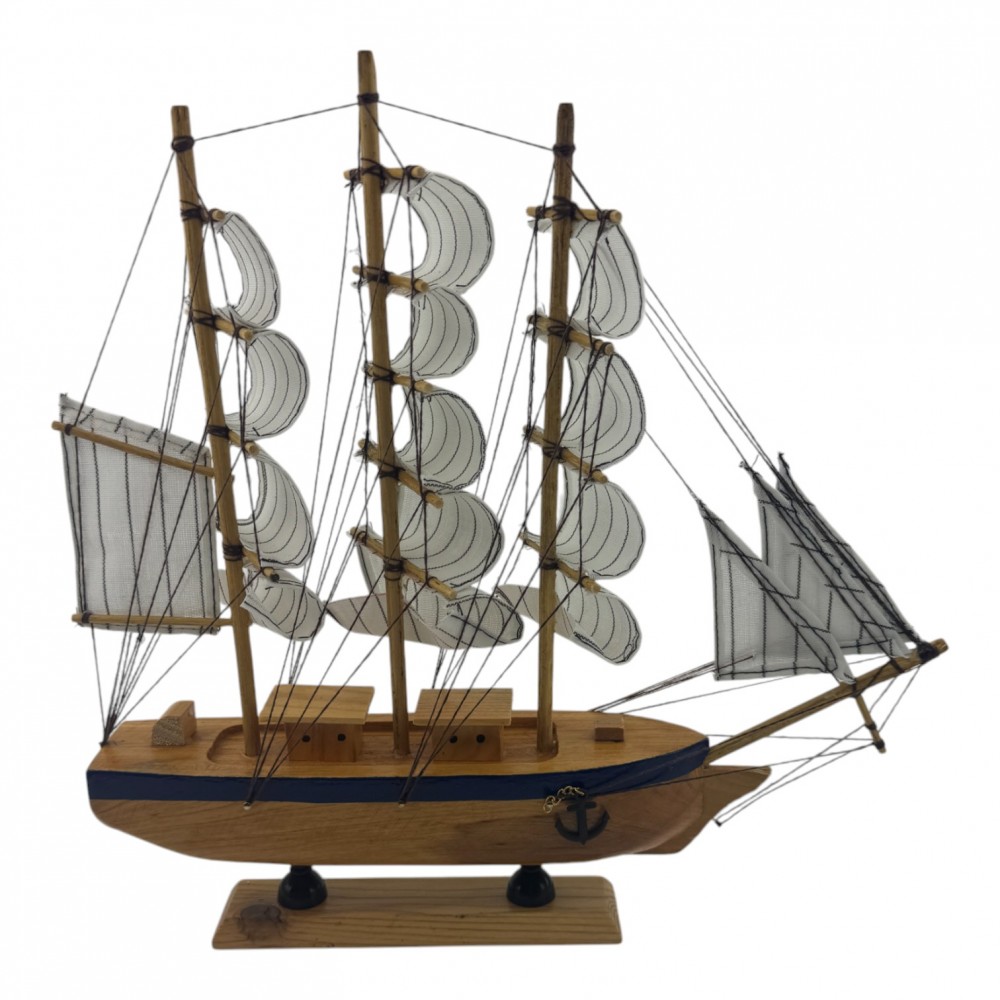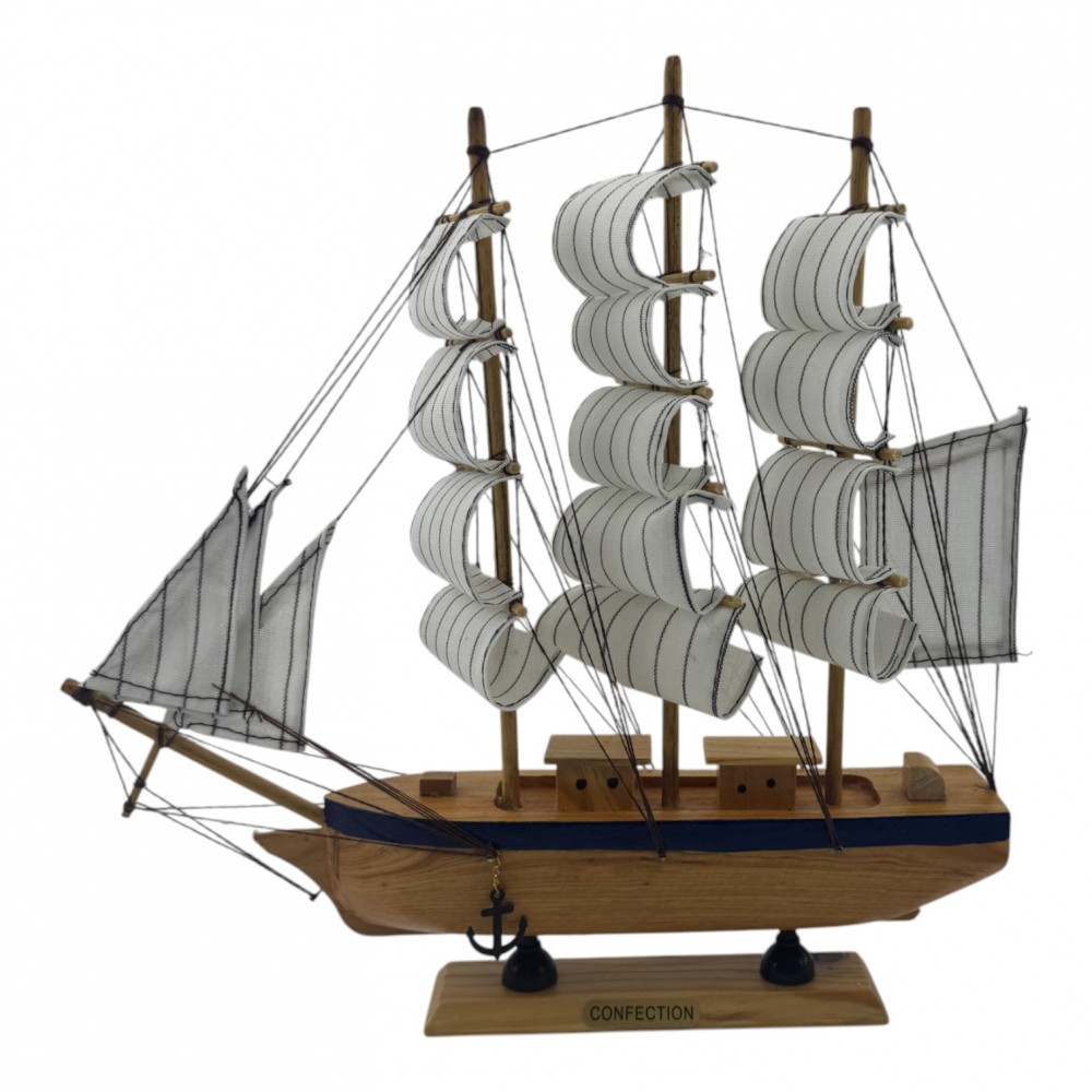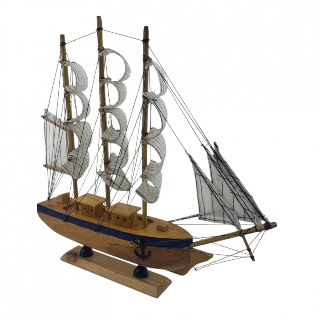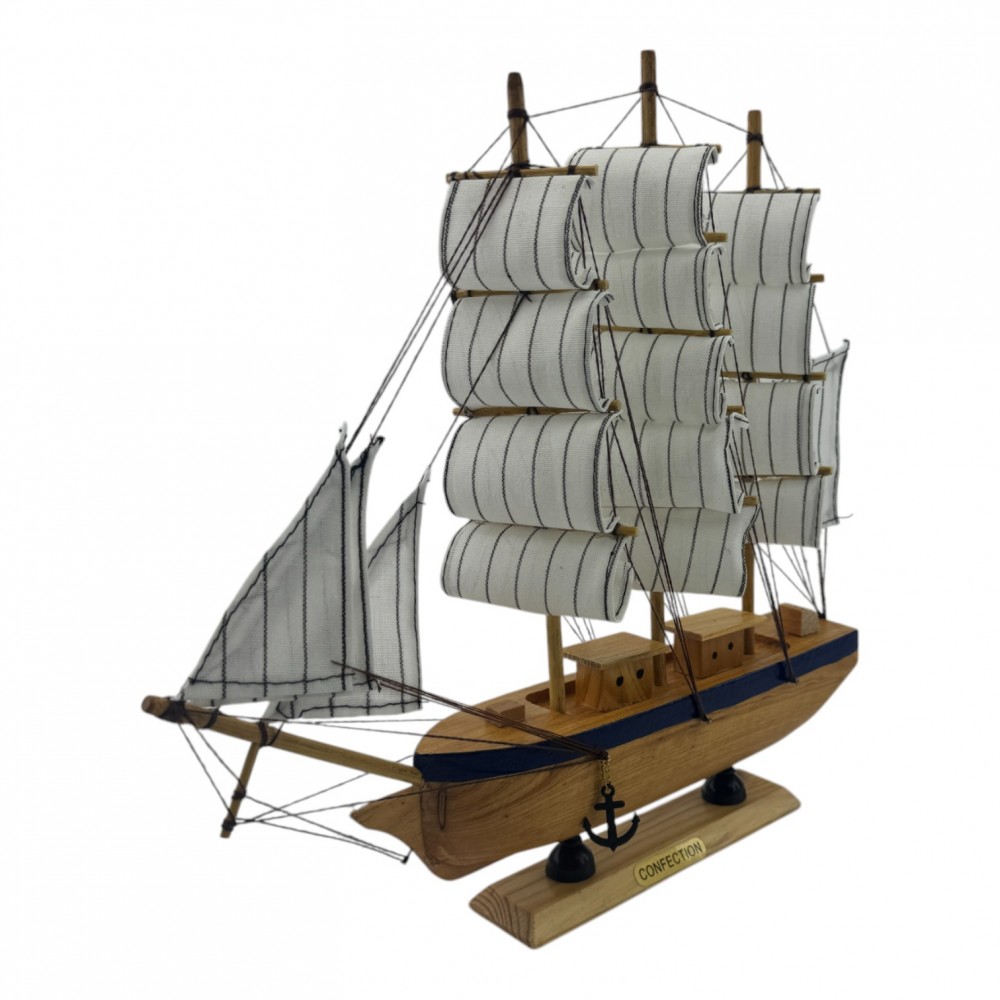 Особенности: Компактная модель парусника, выполненная из дерева и ткани, станет отличным элементом декора и подарком для любителей морской тематики.