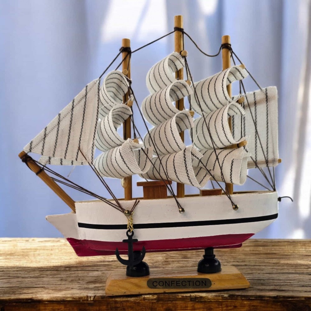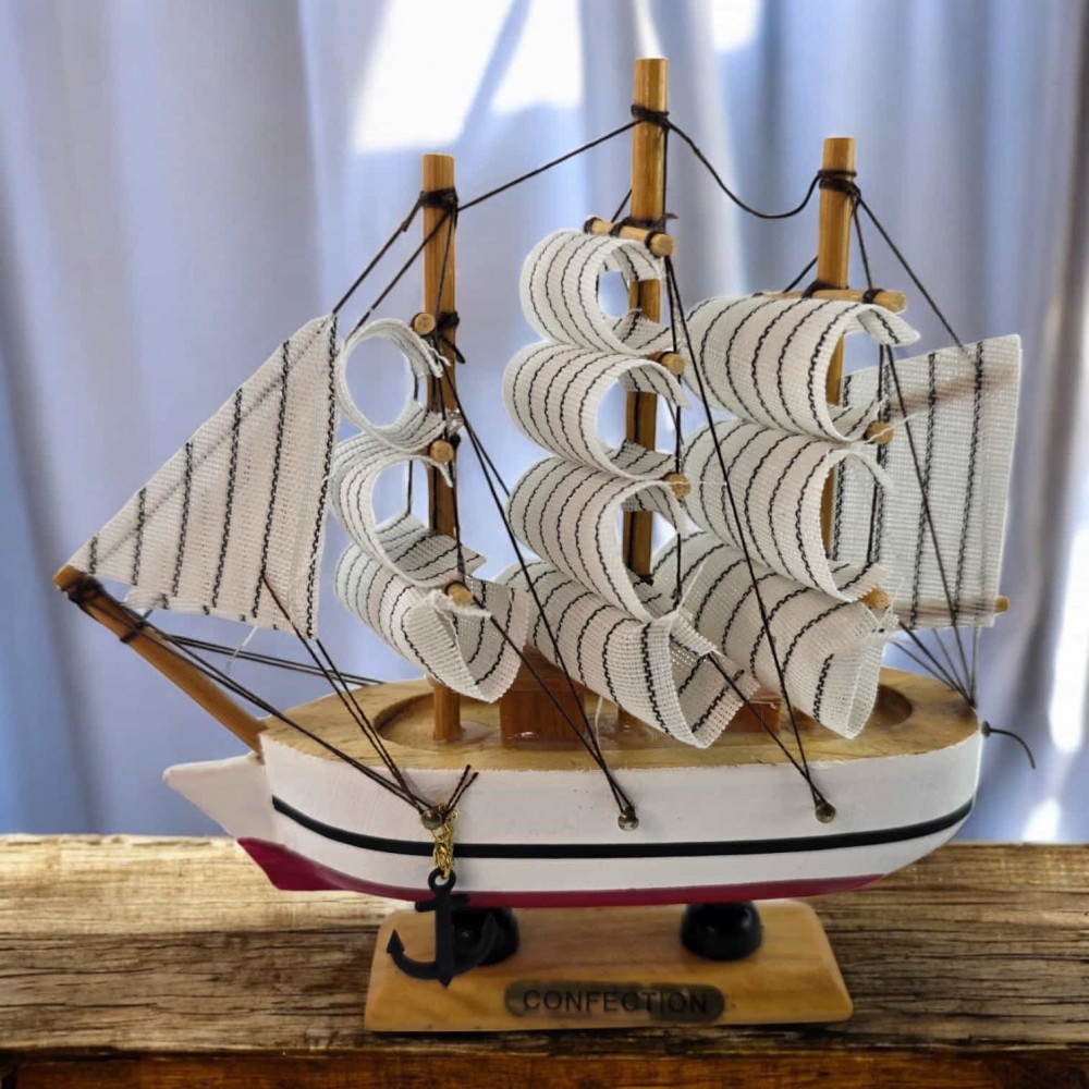 Особенности: Компактная модель парусника, выполненная из дерева и ткани, станет отличным элементом декора и подарком для любителей морской тематики.
