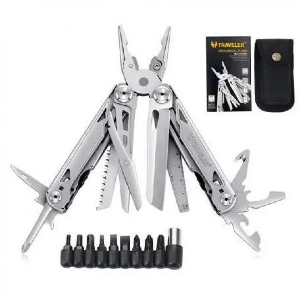 Мультитул тактический Traveler MQ064DG Silver 28 в 1, комплект бит, с чехлом, с плоскогубцами 16,2см