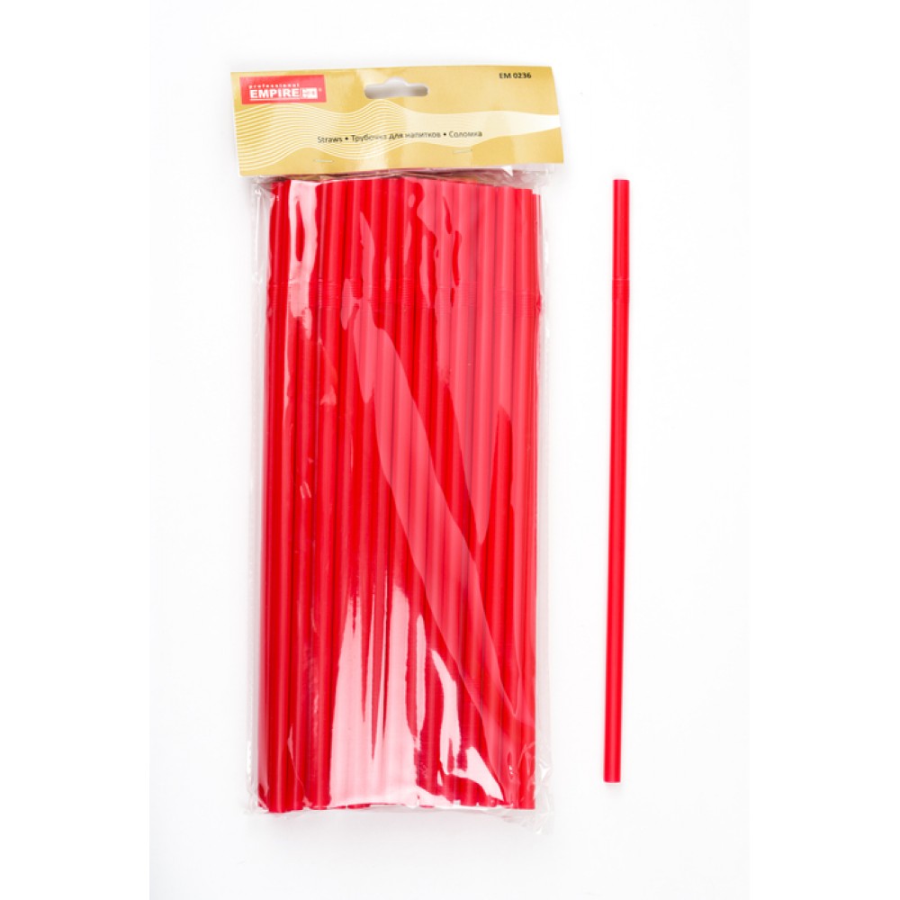 Набіp пластикових трубочек з вигином червоного кольору L 21 см Моно ( 50 шт )