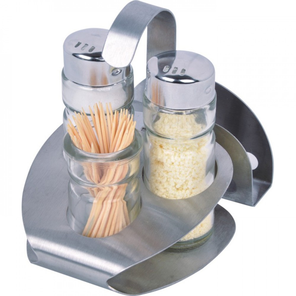 Набір для спецій на підставці: сіль / перець / салф, / зубоч Нео ( 5 пр )