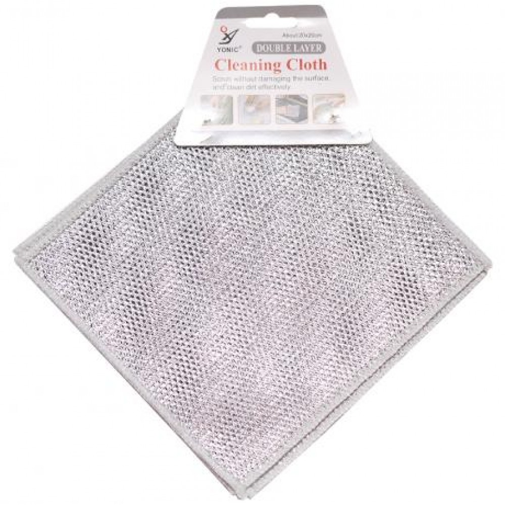 Ці двошарові серветки-сітки з щільної фольгованої нитки призначені для миття посуду. Вони ефективно видаляють плями та кіптяву з різних поверхонь. Розмір кожної серветки - 20х20 см.