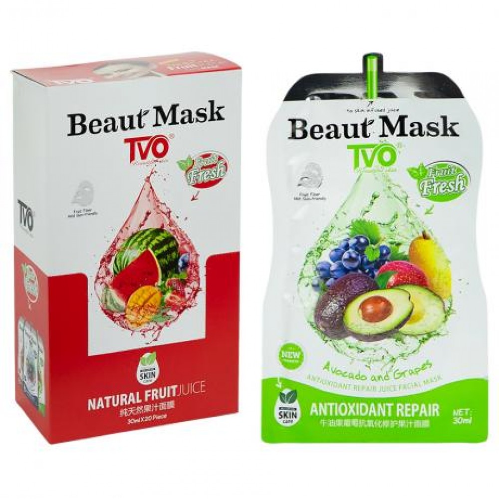 Набір масок тканинних 20шт зволожуючих для обличчя Avocado and Grapes TVO 014