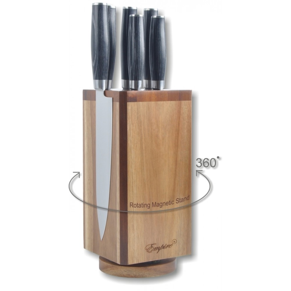Бренд : EmpireМодель: ТомНабір : 6 пр.Матеріал : Нержавіюча сталь.Матеріал підставки: ДеревоМатеріал ручки: ПластикЗагальна довжина: 32,532,527,523,519,5 смЛезо: 20 х 4 20,5 х 3 15,5 х 3 13 х 2,3 9,5 х 2,2 смПідставка: Поворотна 26 х 12 смПосудомийна машина : ТакУпаковка: Фірмова коробкаКраїна виробник : К.Н.Р