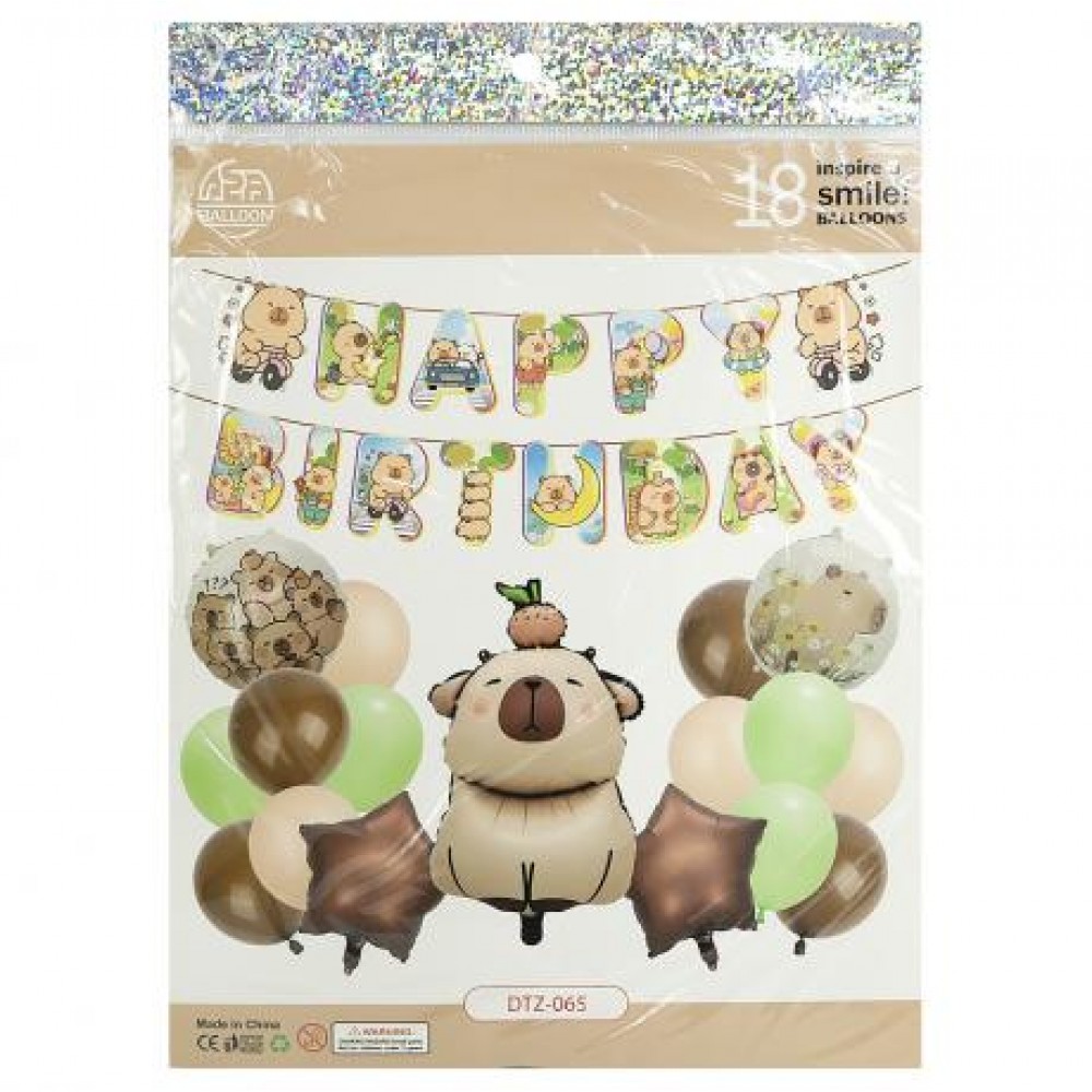 Набір декоративних повітряних кульок для оформлення свята містить розтяжку Happy Birthday зі стрічкою та голкою (висота літер близько 18 см), а також елементи для створення яскравої святкової зони. У комплект входять 12 латексних куль діаметром 10", 2 фольговані зірки розміром 45×50 см, фольгована фігурка приблизно 70×40 см, а також 2 фольговані кулі з малюнком діаметром 43 см. Набір ідеально підходить для дня народження, фотозони та тематичного декору. Упаковка: 23×29,5 см.