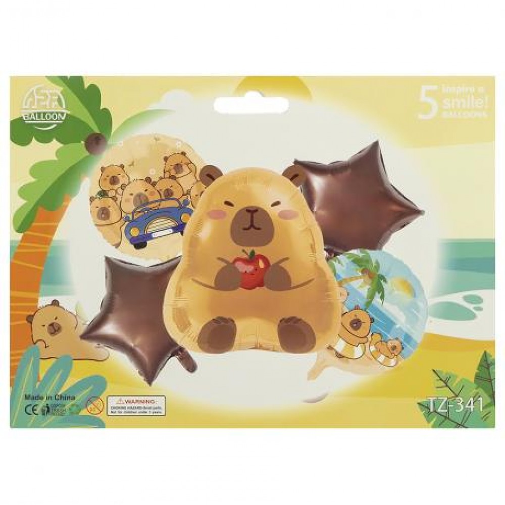 Набір фольгованих кульок із мультяшними персонажами — яскрава прикраса для дитячого свята. У комплекті 5 кульок: велика фігура героя та 4 додаткові кульки (зірочки й круглі кульки з малюнками). Кульки легко надуваються повітрям або гелієм, довго зберігають форму й створюють ефектне святкове оформлення. Підходять для декору кімнати, фотозони чи торта. Продаються в асортименті, різні дизайни.