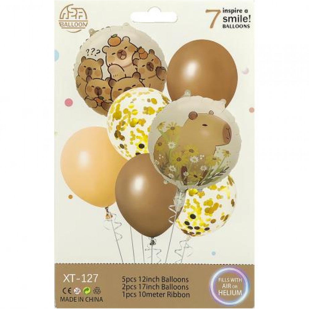 Набір повітряних кульок 7 шт підходить для оформлення дня народження, дитячих заходів та фотозон. У комплект входять кульки різного розміру з тематичним принтом і конфеті. Елементи легко поєднуються, створюючи акуратну святкову композицію. У наборі також є стрічка для оформлення. Упаковка: 14×20 см.