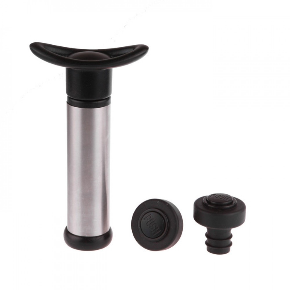 Вакуумний насос для вина з двома пробками – це набір, призначений для видалення та повітря з пляшок та їхнього герметичного закриття, що допомагає зберегти свіжість вина та інших напоїв після відкриття. Він запобігає окисленню і зберігає смак та аромат напою.