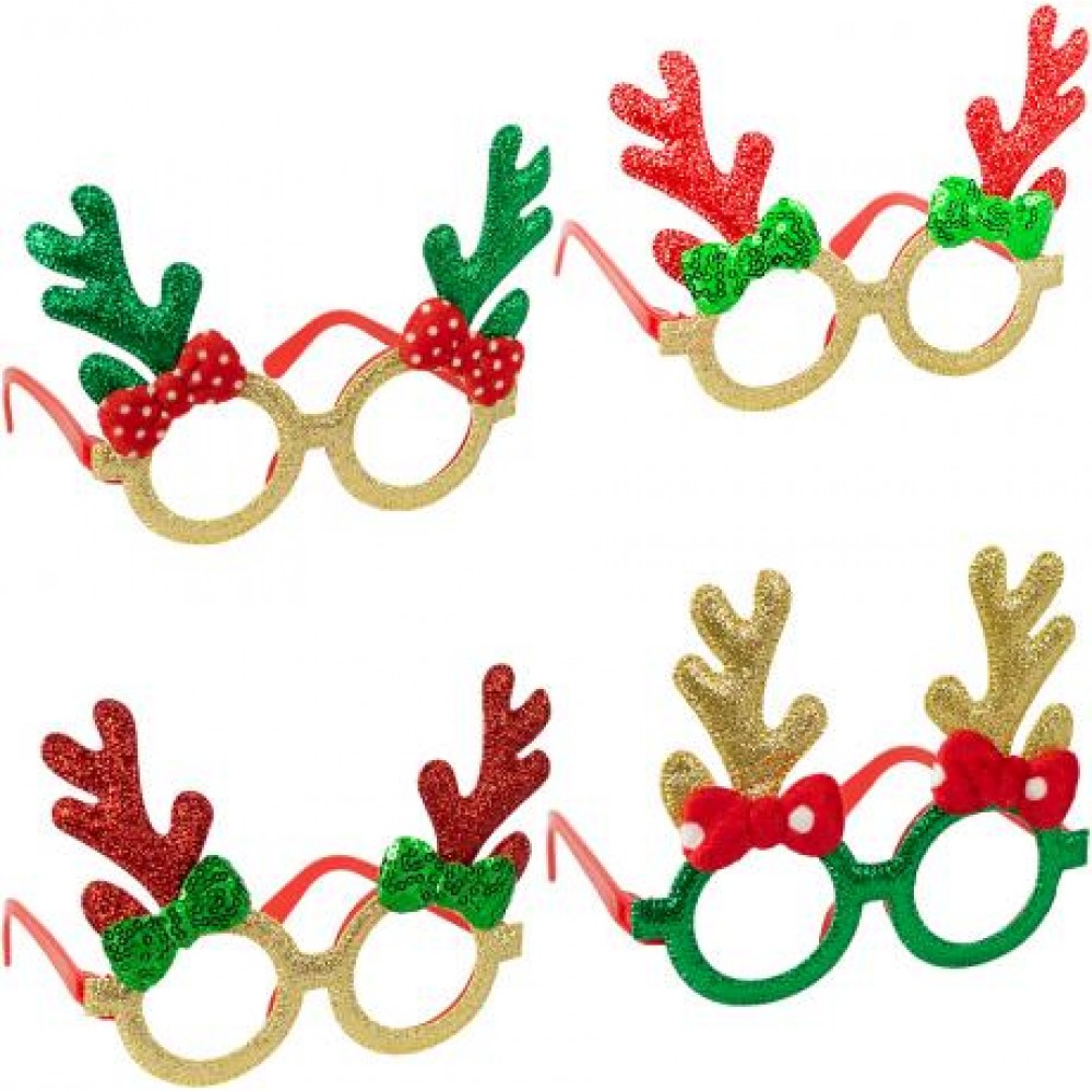 Новорічні окуляри без скелець — яскравий святковий аксесуар із блискітковим декором. Виготовлені з легкого пластику з глітерним покриттям та прикрашені елементами у вигляді бантиків і ріжок. Розмір: ширина 14 см, висота 12,5 см, діаметр оправи 6 см, отвір 4,5 см. Зручно сидять, добре тримаються та підходять як дітям, так і дорослим. Ідеально підходять для карнавалів, вечірок і створення святкового настрою.