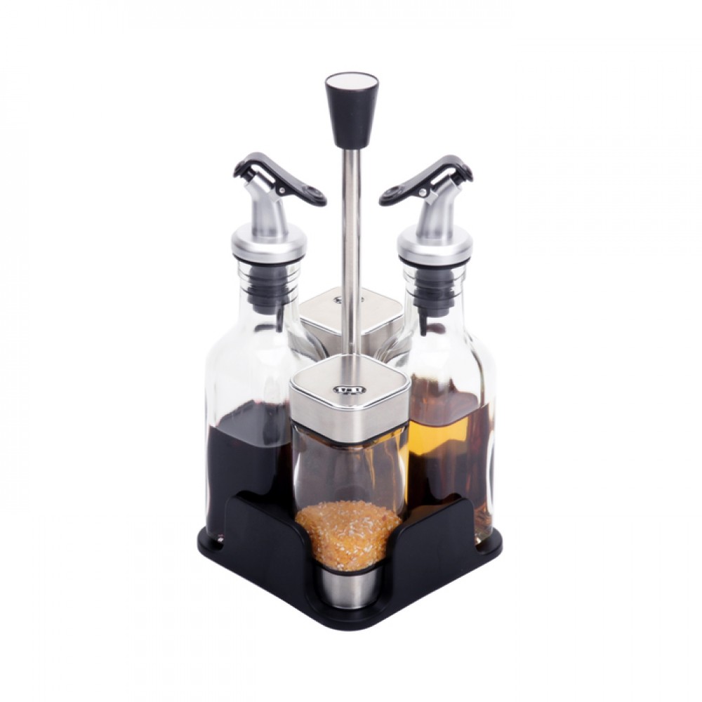 Бренд : EmpireМодель: АмореНабір : 5 пр.Матеріал підставки : Пластик нержавіюча стальМатеріал ємностей: СклоМатеріал кришки: Нержавіюча стальВисота підставки: 24 смПідставка: 11 х 11 смОб’єм ємності: 150 – 200 млВисота ємності: 10 – 15 смФорма: КвадратУпаковка: Фірмова коробкаКраїна виробник : К.Н.Р