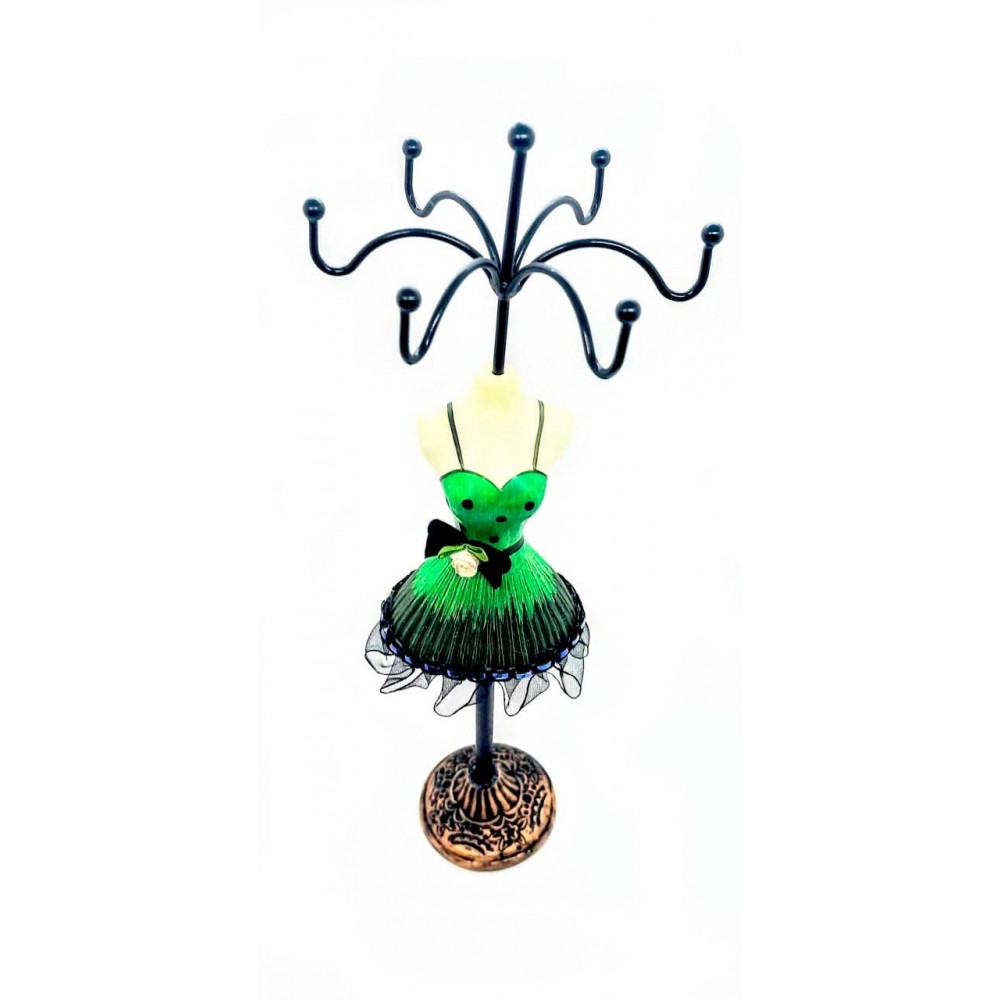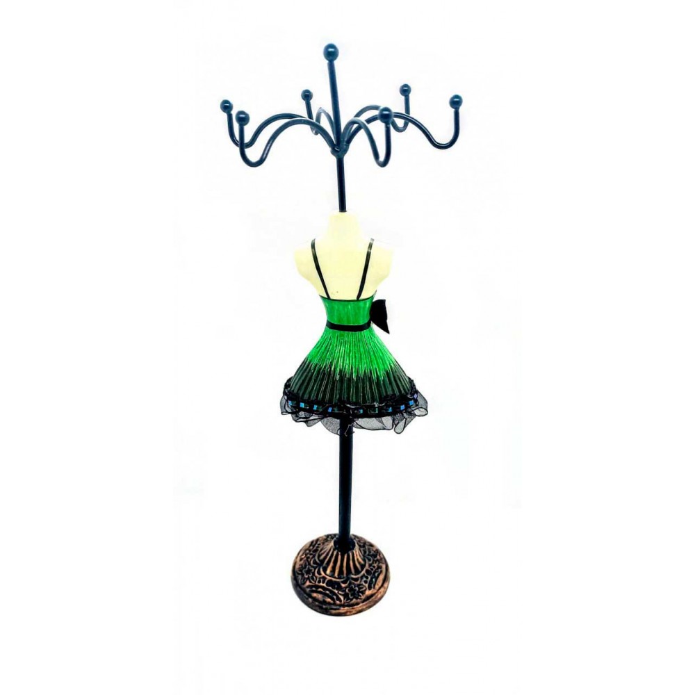 Это замечательный держатель для драгоценностей в форме очаровательной женской фигуры с высотой 275 мм. Фигура украшена ярким платьем, что делает ее неповторимой и стильной. Этот держатель прекрасно подходит для любого стола или комода. Он станет прекрасным дополнением к вашему интерьеру. Держатель идеально подходит для хранения различных драгоценностей, таких как кольца, серьги и бусины. Этот удобный и яркий держатель позволит хранить ваши любимые драгоценности в одном месте и сохранить их от повреждений и потерь.