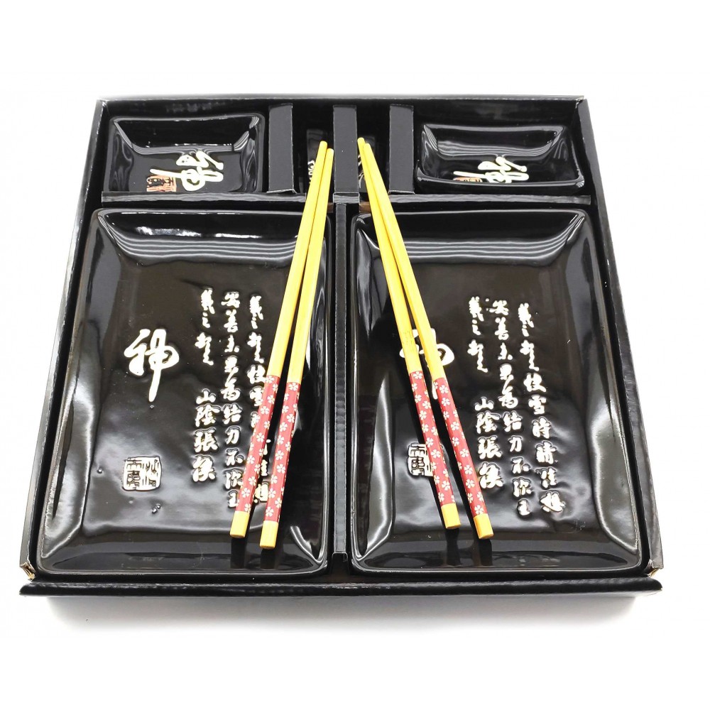 Набор расчитан на две персоны, в наборе две керамические тарелки прямоугольной формы.