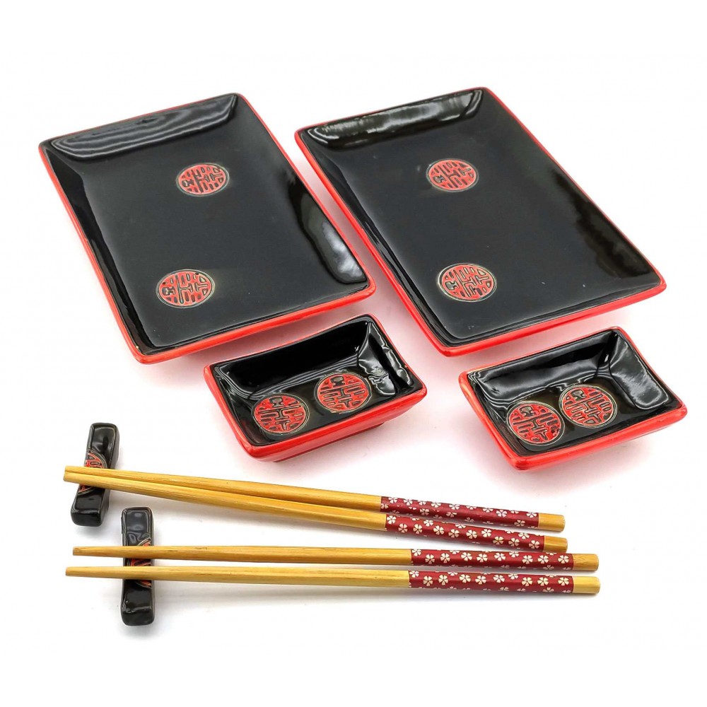 Сервиз для суши Иероглифы на черном фоне (2 персоны)(28х28,3х3,5 см)Q