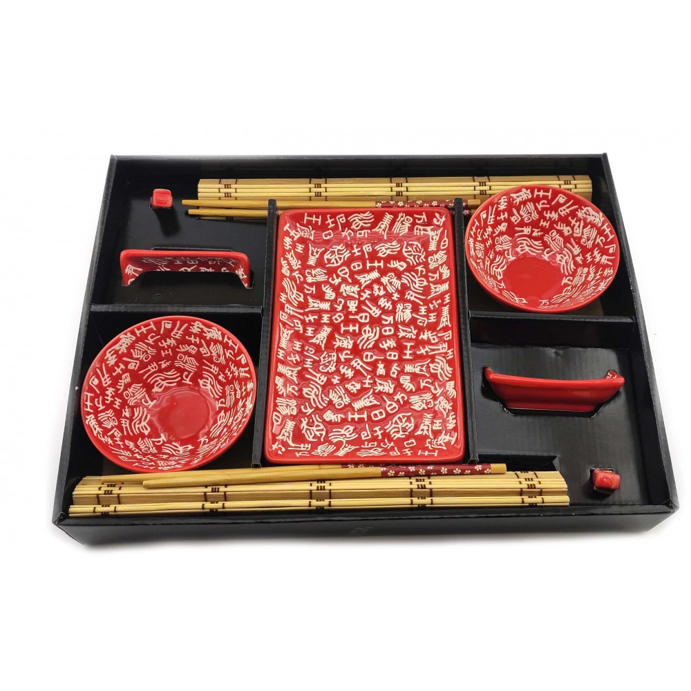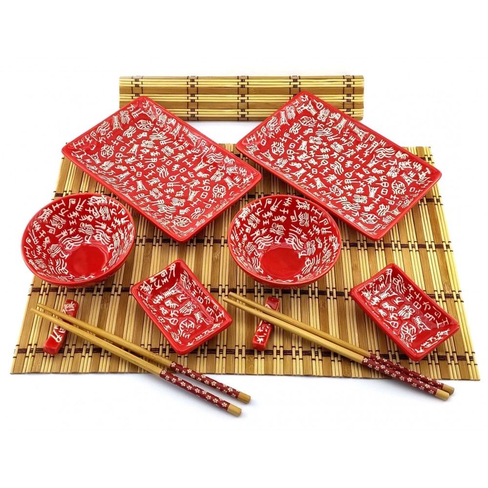 Набор рассчитан на две персоны, в наборе две керамические тарелки прямоугольной формы.