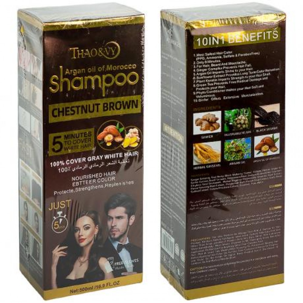 Шампунь-фарба Thao&WY Argan Oil of Morocco Plant Series — інноваційний засіб для швидкого фарбування волосся всього за 5 хвилин. Формула з аргановою олією глибоко живить і зміцнює волосся, надаючи йому природного блиску та шовковистості. Повністю зафарбовує сивину, відновлює структуру волосся й захищає його від пересушування. Підходить для всіх типів волосся. Об’єм 500 мл. Зручний у використанні, не потребує додаткових інструментів.