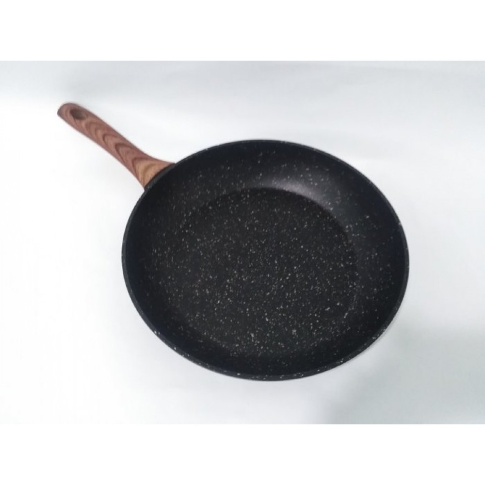 Стильна і зручна, а так само довговічна сковорода з покриттям з природного каменю знайде своє місце на будь-якій кухні. Рекомендації щодо використання: Перед першим використанням вимийте посуд мийним засобом, сполосніть, просушіть. Забороняється використовувати металеві губки, а також засоби, що містять абразивні добавки і хлор. Для миття посуду можна використовувати посудомийну машину, так і ручну мийку. Різкий перепад температур може призвести до псування покриття, тому не ставте на гарячу конфорку посуд із холодильника. Посуд з антипригарним покриттям прослужить довше, якщо продукти в ньому помішувати дерев’яними, пластиковими або силіконовими інструментами