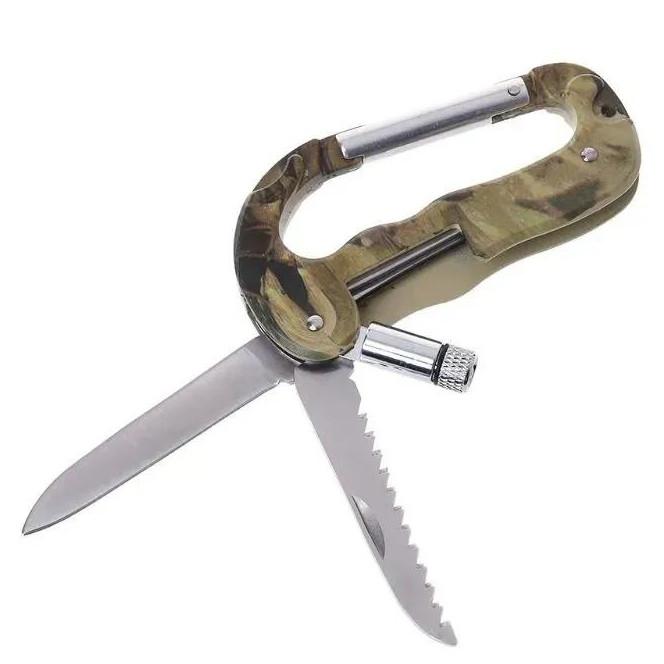 Тактический нож Traveler A-08 кемпинг, альпинистский карабин, крюк, LED фонарик