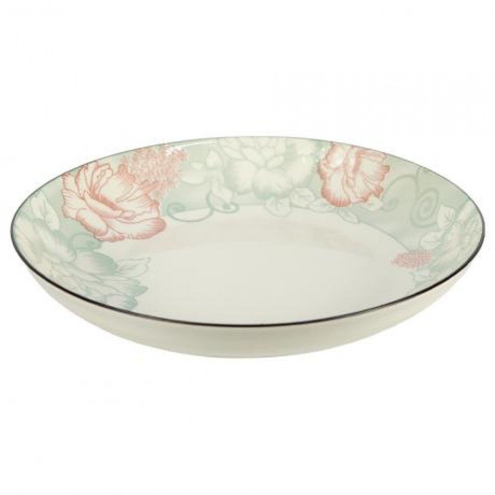 Керамічна тарілка універсального призначення діаметром 20,5 см та висотою 5,5 см, об’єм 500 мл. Виготовлена з міцної кераміки кремового відтінку та декорована ніжним квітковим візерунком у пастельних тонах по краю. Легко поєднується з повсякденним і святковим сервіруванням. Підходить для подачі супів, салатів, пасти, каш і других страв. Оптимальний вибір для дому, кафе та ресторанів.
