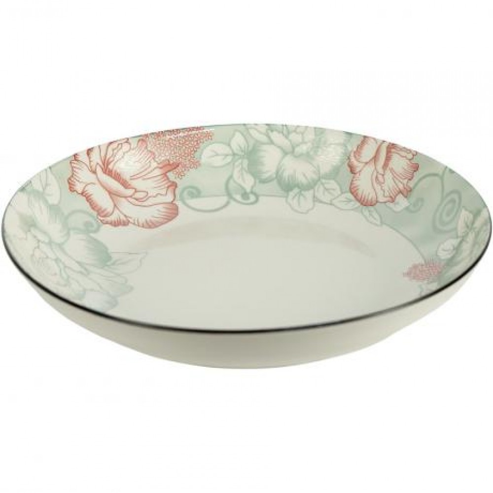 Овальна керамічна тарілка з ніжним квітковим візерунком. Розмір 23×6,5 см, об’єм близько 700 мл. Виготовлена з міцної кераміки кремового кольору та прикрашена витонченим рослинним малюнком у пастельних тонах. Підходить для щоденного використання та ефектної сервіровки столу. Ідеальна для подачі гарнірів, салатів, закусок, пасти й інших страв.