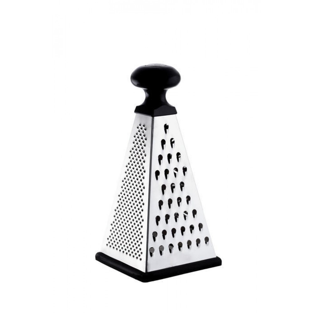 Тертка із нержавіючої сталі. 4 робочі теркові грані. Нержавіюча сталь, з якої виготовлена терка-подрібнювач дзеркально відполірована, пластикова ручка надійно кріпиться до корпусу. За допомогою такої тертки Ви легко подрібните необхідні продукти.