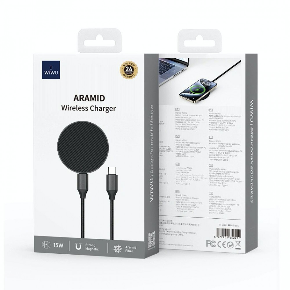 Функциональный кабель Wi-W034 сочетает в себе высокую прочность и поддержку беспроводной зарядки мощностью до 15 Вт, обеспечивая стабильную и быструю подзарядку совместимых устройств.