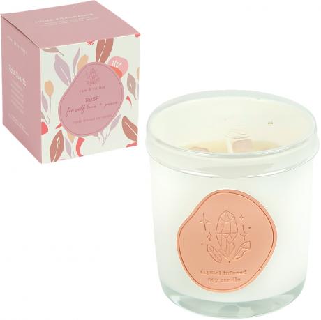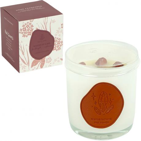 Ніжний квітковий аромат розкривається м’якими оксамитовими нотами свіжих пелюсток, наповнюючи простір чуттєвістю, теплом і легкою солодкістю. У соєвому воску декоративно розміщені кристали, що надають свічці особливої естетики та роблять її привабливою для подарункових наборів.