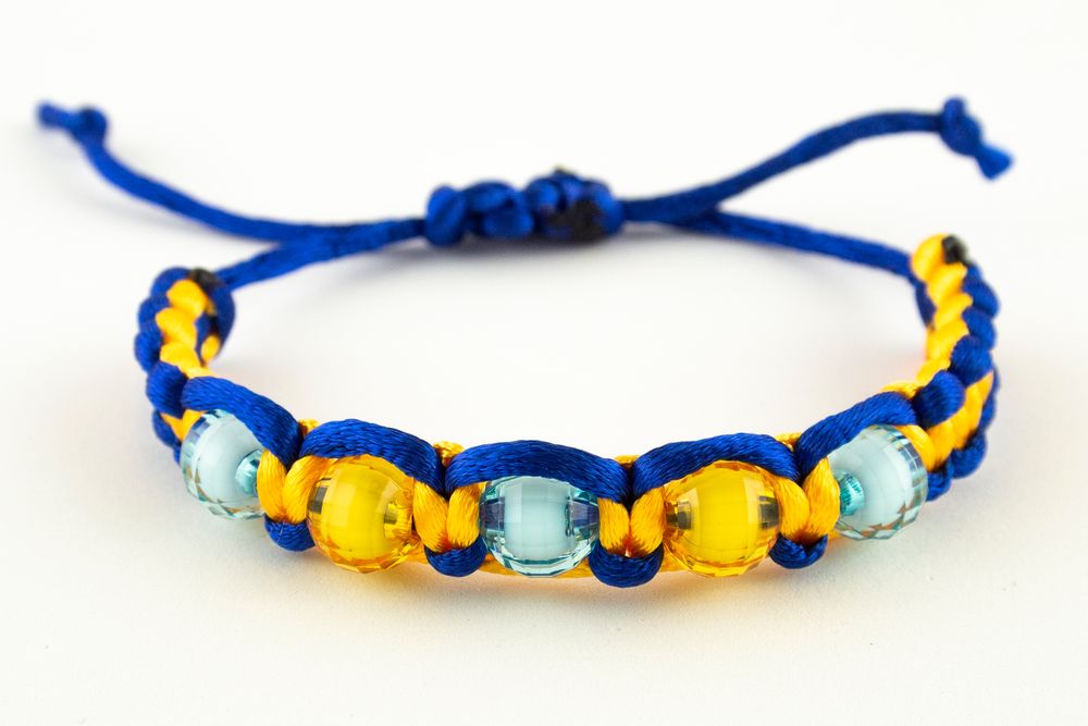 Браслет фенечка из лент желто-голубых и бусинок Желто-синий Unison (783014)
