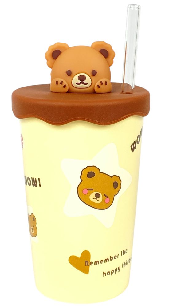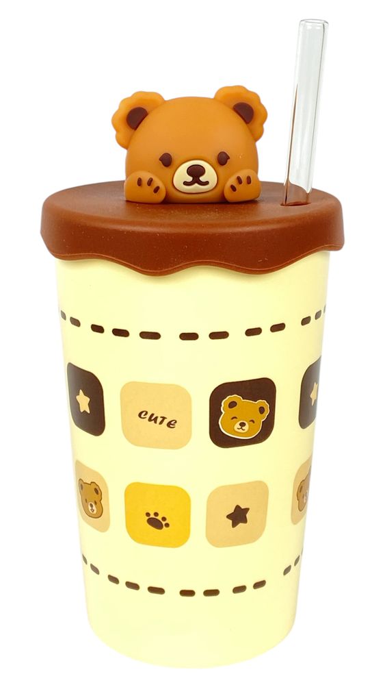 Стакан керамический 450мл с силиконовой крышкой и трубочкой "Медведь" (513)