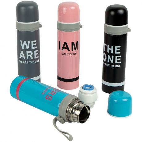 У комплекті передбачений знімний тканинний ремінець довжиною 12 см для комфортного носіння. Не використовувати хлор, хімічні розчинники та металеві щітки для очищення. Термос не призначений для зберігання їжі та молочних продуктів.
