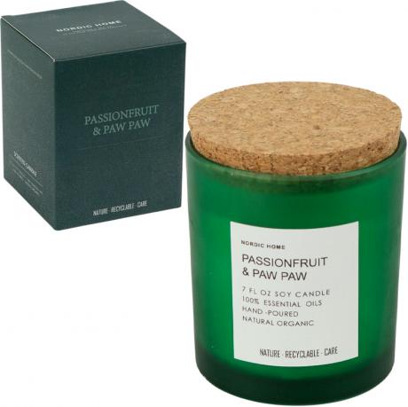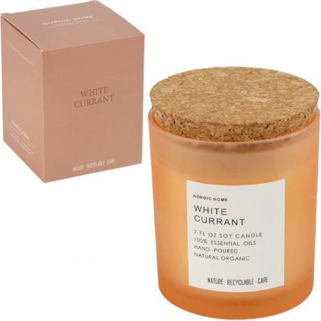 Натуральна аромасвічка із соєвого воску у кольоровій скляній склянці з дерев’яною корковою кришкою. Вага — 490 г. Розмір склянки — 10×7 см, коробка — 10×8×8 см. Свічка налита вручну, що підкреслює якість виконання та акуратність заливки. Соєвий віск забезпечує рівне та чисте горіння без різкого запаху.