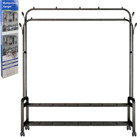 Подвійна стійка-вішалка TW 606-2 призначена для зручного зберігання одягу та взуття у передпокої, гардеробній або спальні. Конструкція з двома перекладинами та нижніми полицями допомагає ефективно використовувати простір і розміщувати повсякденні та сезонні речі. Металевий каркас забезпечує стійкість і надійність у щоденному використанні. Підходить для дому та оптових продажів.